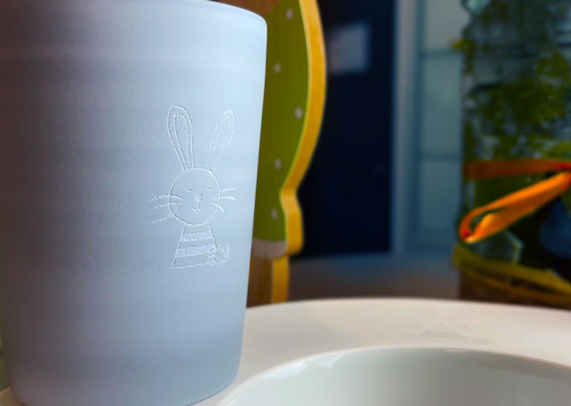 Für die Osterfeiertage hat die Porzellanmanufaktur verschiedene Geschirrstücke hergestellt, die am ifw Jena mit verschiedenen Laseranlagen österlich verziert wurden.